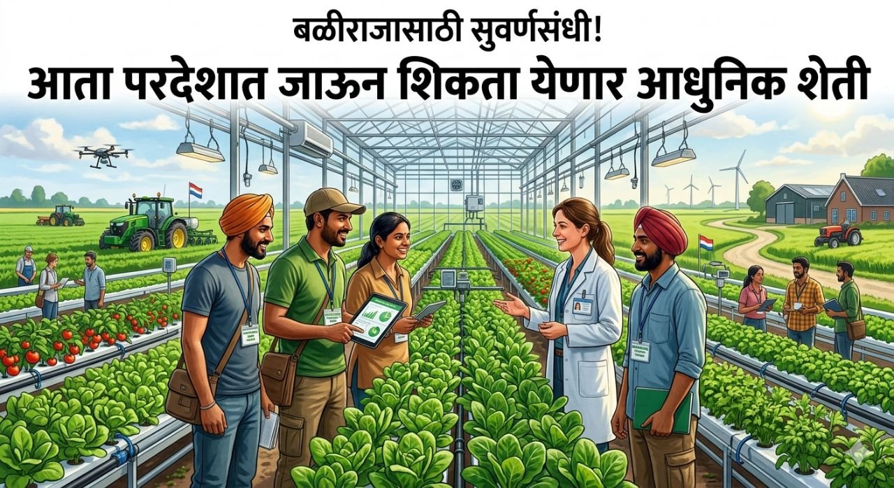 महाराष्ट्रातील शेतकऱ्यांसाठी एक मोठी आणि ऐतिहासिक संधी उपलब्ध झाली आहे. राज्य शासनाच्या कृषी विभागाने ‘राज्यातील शेतकऱ्यांची देशाबाहेरील अभ्यासदौरे योजना’ जाहीर केली असून, आता बळीराजाला थेट परदेशात जाऊन आधुनिक शेती तंत्रज्ञानाचा अनुभव घेण्याची संधी मिळणार आहे.
