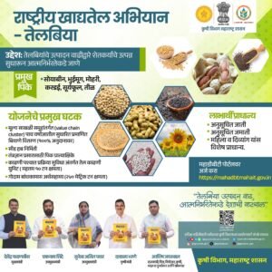 “तेलबिया उत्पादन वाढ, आत्मनिर्भरतेकडे देशाची वाटचाल” या उद्दिष्टाने राबविण्यात येणाऱ्या या अभियानामुळे राज्यातील तेलबिया उत्पादनात लक्षणीय वाढ होऊन शेतकऱ्यांच्या आर्थिक स्थितीत सुधारणा होण्याची अपेक्षा व्यक्त केली जात आहे.