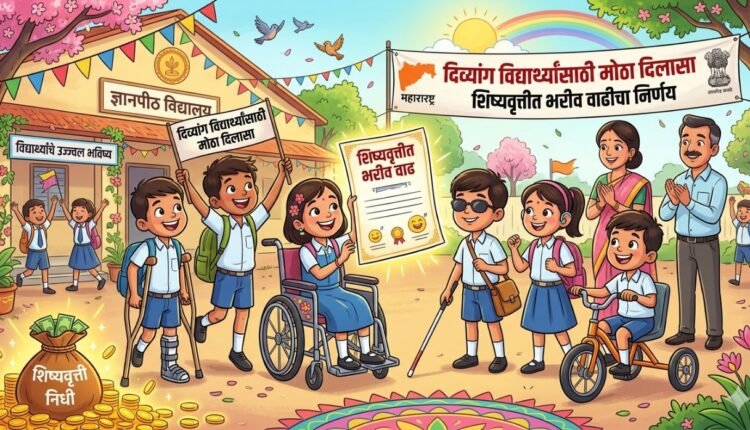 राज्यातील हजारो दिव्यांग विद्यार्थ्यांच्या शिक्षणाला बळ देण्यासाठी राज्य सरकारने महत्त्वपूर्ण निर्णय घेत शिष्यवृत्तीच्या रकमेत मोठी वाढ जाहीर केली आहे. मुख्यमंत्री देवेंद्र फडणवीस यांच्या अध्यक्षतेखाली झालेल्या मंत्रिमंडळ बैठकीत हा निर्णय मंजूर करण्यात आला.