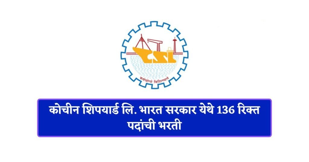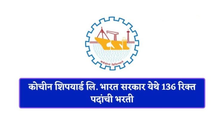 कोचीन शिपयार्ड लिमिटेड अंतर्गत 136 रिक्त पदांची भरती