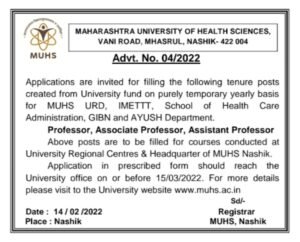 अर्ज पाठविण्याचा पत्ता- मा. कुलसचिव, महाराष्ट्र आरोग्य विज्ञान विद्यापीठ, वणी दिंडोरा रोड, म्हसरूळ, नाशिक – 422004