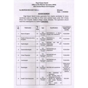 अर्ज पाठविण्याचा पत्ता- सदस्य सचिव कार्यालय (RKS), श्री विनोबा भावे सिव्हिल हॉस्पिटल, सिल्वासा – 396230