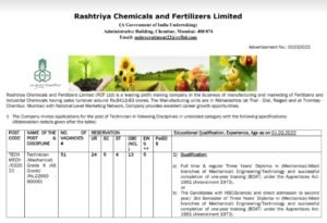 डिप्लोमा-पदवीधरांना संधी! राष्ट्रीय केमिकल्स अँड फर्टिलायझर्स लिमिटेड (RCFL) अंतर्गत 111+ रिक्त जागांसाठी भरती
