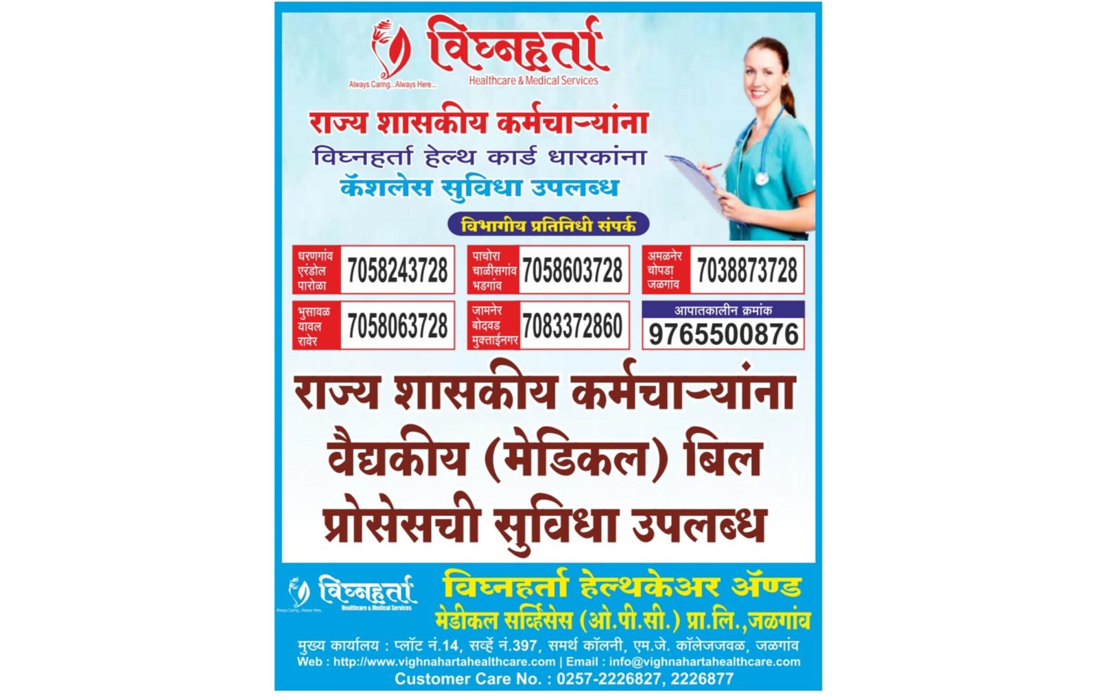 विघ्नहर्ता हेल्थकेअर अँण्ड मेडीकल सर्व्हिसेसच्या वतीने राज्य शासकीय कर्मचाऱ्यांना ‘आरोग्य समृद्धी योजनेचा’ लाभ घेण्याचे आवाहन