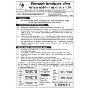 महत्वाची सुचना- १) डिस्चार्ज करतेवेळी वैद्यकीय प्रतिपूर्ती चे सर्व कागदपत्र वर सहीकरून देणे बंधनकारक आहे. तसेच सॅलरी अकाऊंट चा (अकाऊंट पे) चेक व प्रॉमीसरी नोट देणे बंधनकारक राहील.