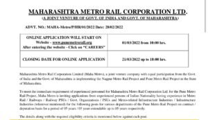 पुणे मेट्रो रेल्वे अंतर्गत मॅनेजर पदासाठी भरती; अर्ज करण्याची उद्या शेवटची तारीख