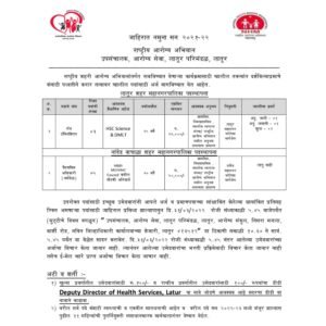 अर्जाची प्रत पाठवण्याचा पत्ता- उपसंचालक, आरोग्य सेवा, लातूर परिमंडळ, आरोग्य संकुल, तिसरा मजला, बार्शी रोड, नवीन जिल्हाधिकारी कार्यालयाच्या शेजारी, लातूर, पिनकोड- 413512.