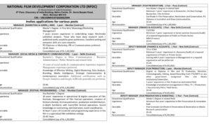 राष्ट्रीय चित्रपट विकास महामंडळात ‘ व्यवस्थापक’ पदांची भरती