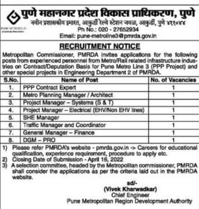 पुणे महानगर विकास प्राधिकरण विभागात रिक्त पदांसाठी भरती