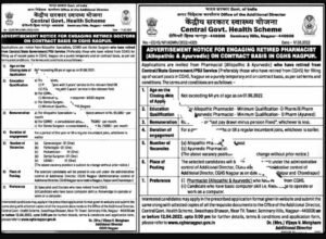 अर्ज पाठविण्याचा पत्ता- अतिरिक्त संचालक, केंद्र सरकारची आरोग्य इमारत, टीव्ही टॉवरजवळ, सेमिनरी हिल्स नागपूर – ४४०००६