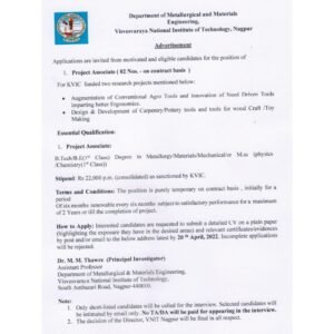 अर्ज पाठविण्याचा पत्ता- डॉ. एम. एम. थावरे (मुख्य अन्वेषक) सहायक प्राध्यापक धातुकर्म आणि साहित्य अभियांत्रिकी विभाग, विश्वेश्वरय्या नॅशनल इन्स्टिट्यूट ऑफ टेक्नॉलॉजी, दक्षिण अंबाझरी रोड, नागपूर-440010