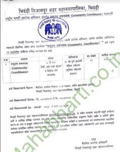 अर्ज पाठविण्याचा पत्ता- वैद्यकीय आरोग्य विभाग, 6वा मजला, नवीन प्रशासकीय इमारत, भिवंडी निजामपुर शहर महानगरपालिका , भिवंडी