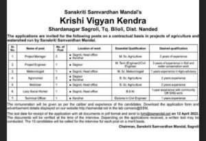 कृषि विज्ञान केंद्र, नांदेड येथे रिक्त जागांसाठी भरती
