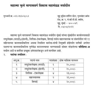 महात्मा फुले मागासवर्ग विकास महामंडळात मुंबई येथे भरती