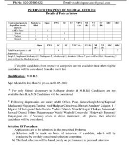 अर्जाची प्रत पाठवण्याचा पत्ता- कार्यालय, प्रशासकीय वैद्यकीय अधिकारी, तळमजला, पंचदीप भवन, क्र. 689/90, बिबवेवाडी, पुणे, पिनकोड- 411037