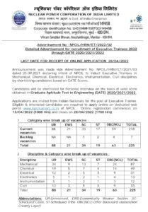 शैक्षणिक पात्रता- (i) 60% गुणांसह संबंधित शाखेत/विषयात BE/B.Tech/B.Sc (Engg.)/M.Tech (ii) GATE 2020/2021/2022