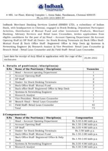 इंडबँक मर्चंट बँकिंग सर्व्हिसेस लिमिटेड अंतर्गत विविध पदांची भरती