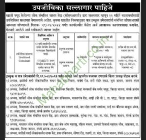 नोकरी विषयी लोक संचालित साधन केंद्रात भरती By Chetan Patil On Apr 20, 2022 0 Share पदाचे नाव- उपजीविका सल्लागार शैक्षणिक योग्यता- B.Sc/ BVSc/ MS-CIT अर्ज पद्धती- ऑफलाईन पद संख्या- 07 जागा नोकरी ठिकाण- जालना अर्ज पाठविण्याचा पत्ता- जाहिरातीत दिलेल्या संबंधित पत्त्यावर शेवटची तारीख- 29 एप्रिल 2022 0 Share FacebookTwitterGoogle+ReddItWhatsAppPinterestEmail