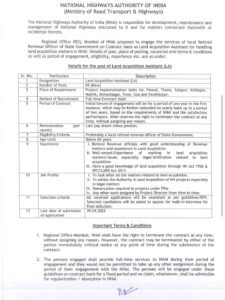 भारतीय राष्ट्रीय महामार्ग प्राधिकरण अंतर्गत भरती
