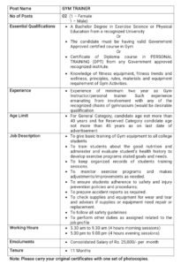 पदाचे नाव- जिम ट्रेनर