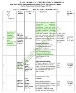 मुलाखतीचा पत्ता- ICAR Central Citrus Research Institute Opp. NBSS & LUP & Regional Remote Sensing Centre, Near University Campus, Before Wadi, Amravati Road, Nagpur