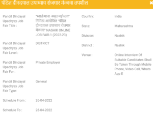 पंडित दीनदयाल उपाध्याय रोजगार मेळावा मधील रिक्त पदे : “स्वातंत्र्याचा अमृत महोत्सव” निमित्य आयोजित “पंडित दीनदयाळ उपाध्याय रोजगार मेळावा” NASHIK ONLINE JOB FAIR-1 (2022-23)