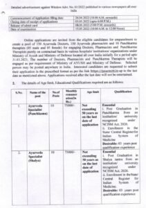 पद क्र.7: (i) पंचकर्म टेक्निशियन कोर्स (ii) 03 वर्षे अनुभव.
