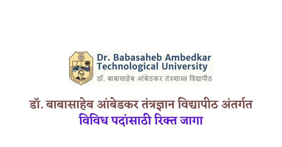 १०वी, ITI, B. Sc., पदवी धारकांसाठी संधी! डॉ.बाबासाहेब आंबेडकर तंत्रशास्त्र विद्यापीठ अंतर्गत भरती