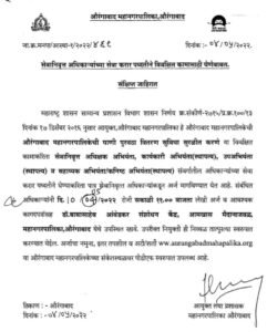 औरंगाबाद महानगरपालिका अंतर्गत मुलाखती द्वारे भरती
