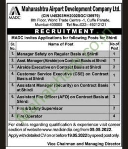 महाराष्ट्र विमानतळ विकास कंपनी लिमिटेड, मुंबई द्वारे भरती
