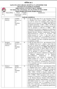 पदाचे नाव- वैद्यकीय संचालक, वैद्यकीय अधिकारी, वैद्यकीय अधीक्षक, जनरल सर्जन, कनिष्ठ रेडिओलॉजिस्ट, क्लिनिकल असिस्टंट, प्लास्टिक सर्जन, वैद्यकीय प्रशासक