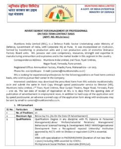अर्जाची प्रत पाठवण्याचा पत्ता- संचालक (एचआर), मुनिशन इंडिया लिमिटेड, दुसरा मजला, न्याती युनिटरी, गुंजन थिएटरजवळ, नगर रोड, येरवडा, पुणे- 411006