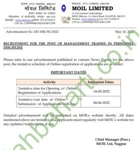 अर्ज करण्याचा पत्ता- (Consultant) Chief Manager (Pers.), Recruitment Section, MOIL Ltd, MOIL Bhavan, 1-A, Katol Road, Nagpur-440 013
