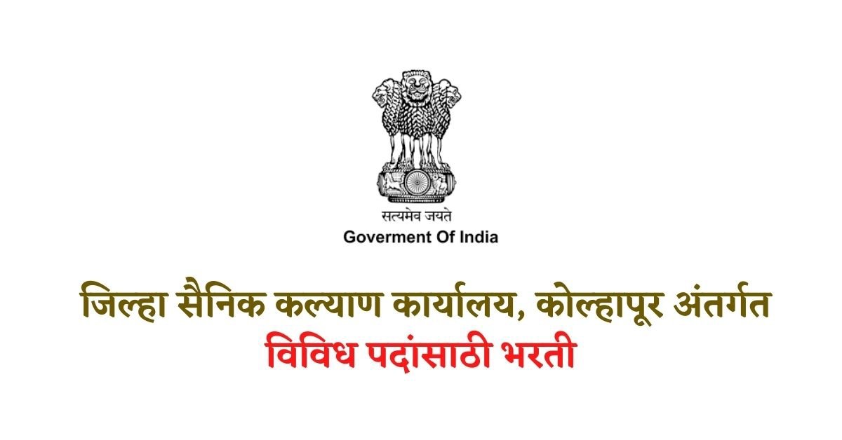 जिल्हा सैनिक कल्याण कार्यालय कोल्हापूर येथे विविध पदांची भरती
