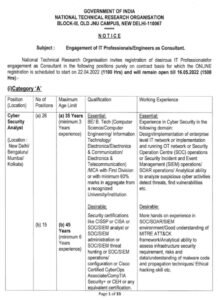 शैक्षणिक पात्रता- (i) B.E/B.Tech/M.E/M.Tech/MCA/M.Sc (ii) अनुभव