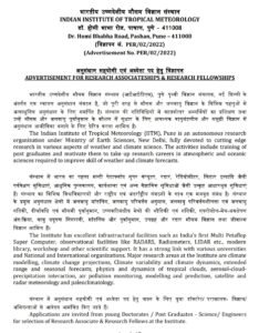 इंडियन इन्स्टिट्यूट ऑफ ट्रॉपिकल मेट्रोलॉजी, पुणे अंतर्गत विविध पदांसाठी भरती