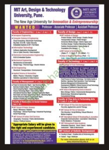 महाराष्ट्र इन्स्टिट्यूट ऑफ टेक्नॉलॉजी (एमआयटी) विद्यापीठ अंतर्गत विविध पदांची भरती सुरू
