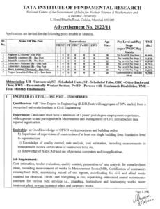 टाटा मूलभूत संशोधन संस्था, मुंबई अंतर्गत भरती