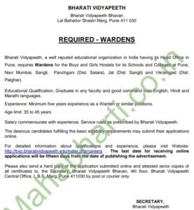 भारती विद्यापीठ पुणे अंतर्गत विविध पदांची भरती