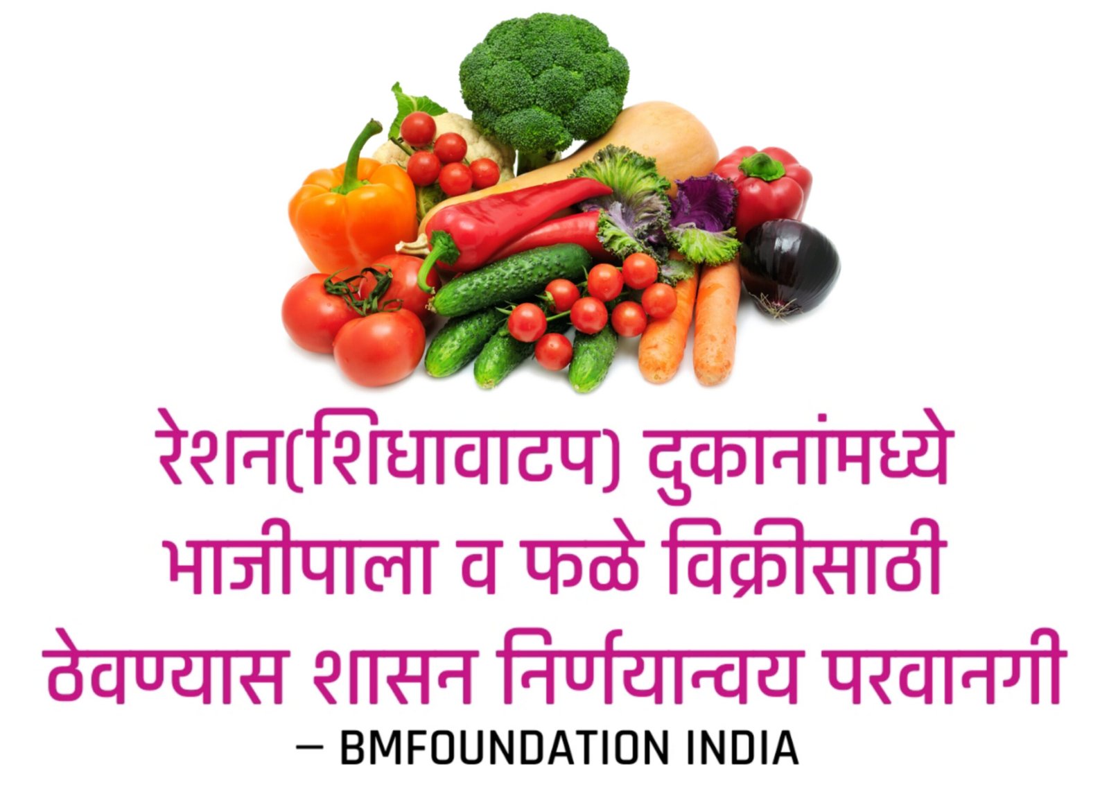 रेशन(शिधावाटप) दुकानांमध्ये भाजीपाला व फळे विक्रीसाठी ठेवण्यास शासन निर्णयान्वय परवानगी