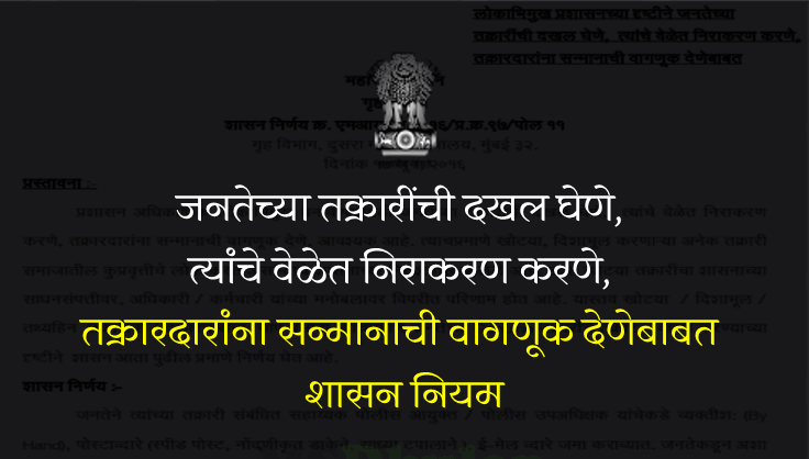 तक्रार निवारण व्यवस्थेबाबत शासन परिपत्रक:-