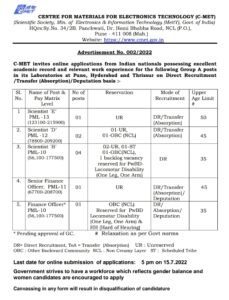 इलेक्ट्रॉनिक्स टेक्नोलॉजी फॉर मटेरियल्स सेंटर मध्ये भरती