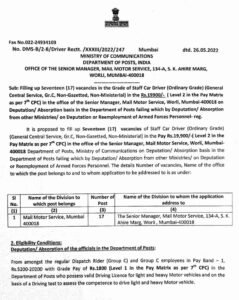 मेल मोटर सेवा, अंतर्गत मुंबई येथे भरती