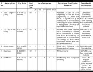 पदाचे नाव- सहाय्यक अभियंता, कनिष्ठ अभियंता, ड्राफ्ट्समन, इलेक्ट्रीशियन, स्टाफ नर्स