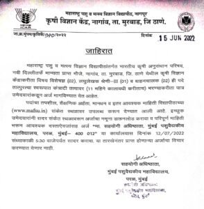 महाराष्ट्र पशु आणि मत्स्य विज्ञान विद्यापीठ, अंतर्गत ठाणे येथे भरती