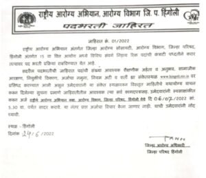 अर्ज करण्याचा पत्ता- राष्ट्रीय आरोग्य अभियान कक्ष, आरोग्य विभाग, जिल्हा परिषद हिंगोली