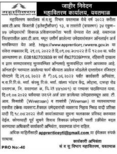 ITI उत्तीर्ण विद्यार्थ्यांना संधी! महाराष्ट्र राज्य वीज मंडळात अप्रेंटीस (विजतंत्री, तारतंत्री) पदासाठी भरती