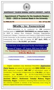 राष्ट्रसंत तुकडोजी महाराज नागपूर विद्यापीठात थेट मुलाखतीद्वारे भरती