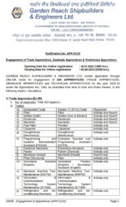 गार्डन रीच बिल्डर & इंजिनिअर लि. (GRSE) मध्ये 253 जागांसाठी भरती