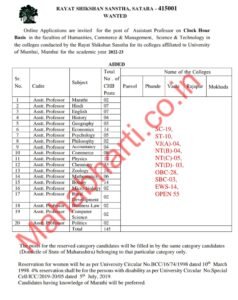 रयत शिक्षण संस्था सातारा अंतर्गत विविध पदांची भरती सुरू
